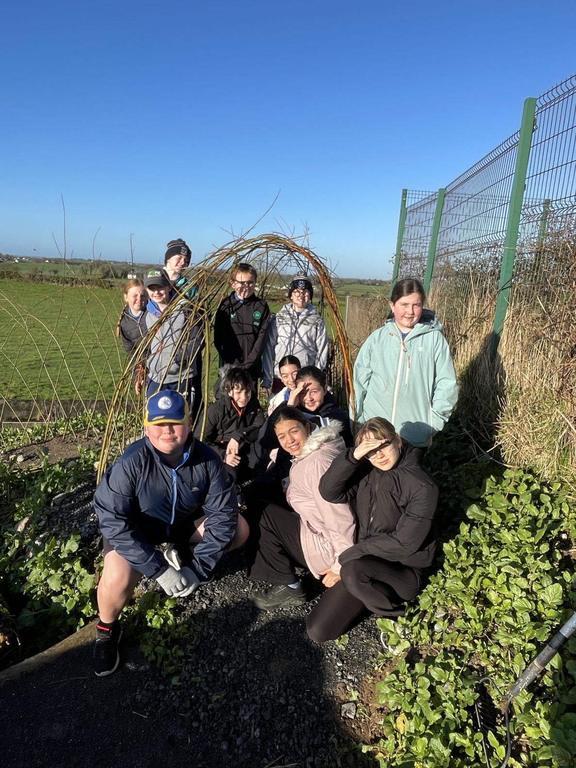 Sixth class used willow to construct a den in our new school sensory garden. They then added a fedge (fence/ hedge) and an arb. These will benefit our school and community for many years to come. The students also learned how to think creatively and artistically when dealing with sustainability issues in the future.